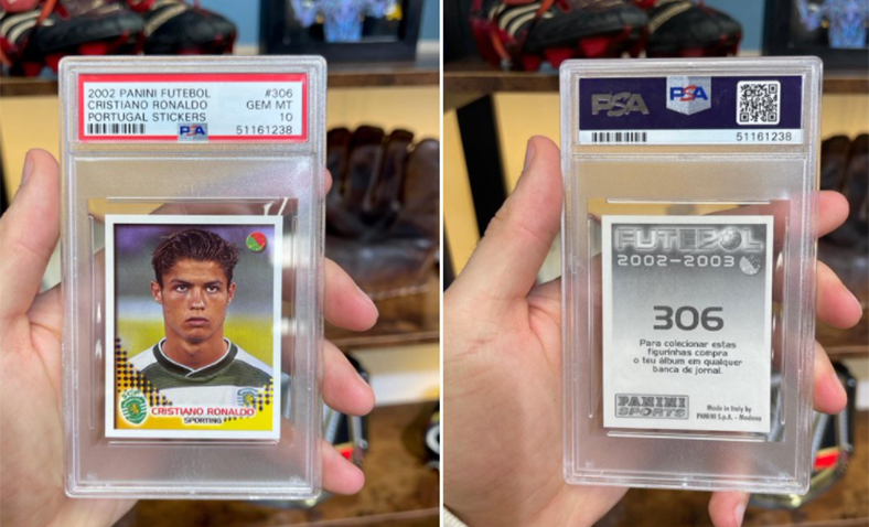 ភាពល្បីល្បាញរបស់ Cristiano Ronaldo បានលាតសន្ធឹងហួសពីទីលានបាល់ទាត់ ជាមួយនឹងស្ទីគ័រ Panini ដ៏កម្រដែលមានតារាព័រទុយហ្គាល់ អំឡុងពេលគាត់ជាក្មេងនៅក្លឹប Sporting ត្រូវបានលក់ដេញថ្លៃក្នុងតម្លៃ £59,000 (80,000 ដុល្លារ)។